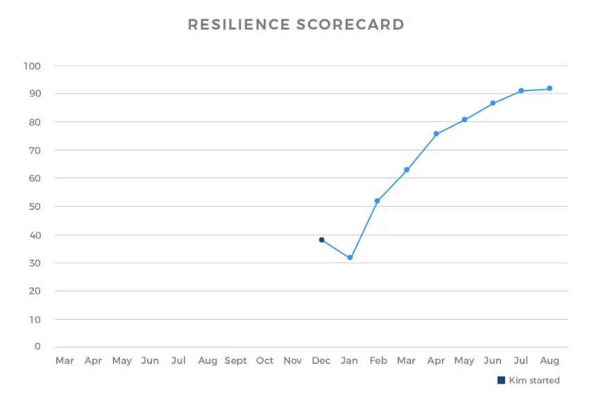 Resilience scorecard: lifted from 38 to 92 out of 100