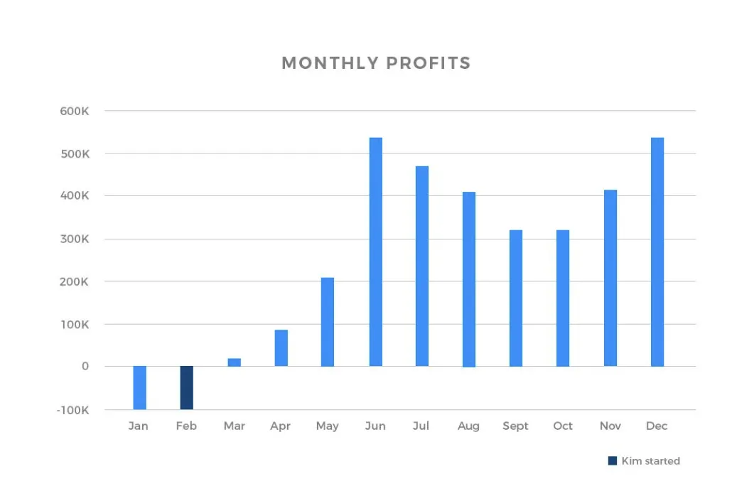 Once we had the new purpose, vision, mission and mindset, we went to work. Once tested, proven and tried, it allowed us to grow very quickly. It took just over a year to develop, but from when we first met Kim in November 2015 to today, the monthly sales from our team grew by nearly 500% and then again to 10x, whilst our team has only doubled in size.