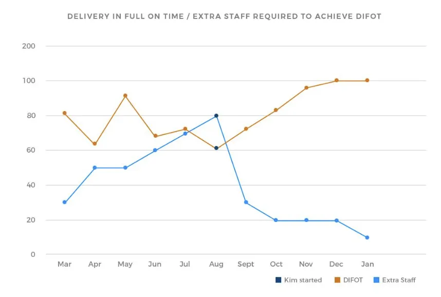 Delivery in full on time increased from 72% to 100%